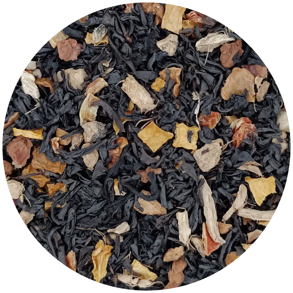 Ce mélange allie la robustesse du thé noir aux notes épicées et réconfortantes de la citrouille, du gingembre et du curcuma, pour une expérience sensorielle inoubliable.